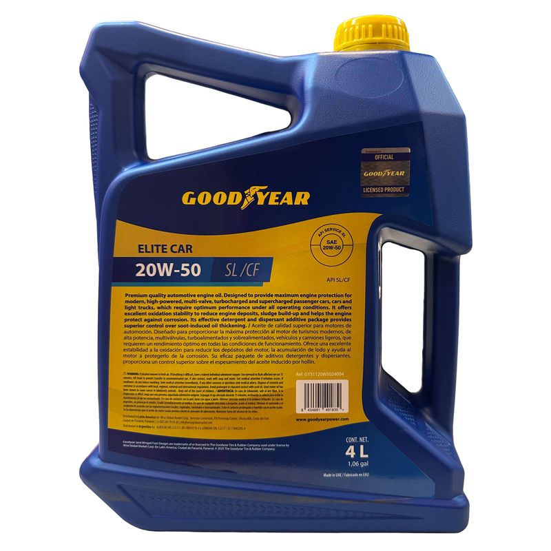 Características Destacadas Aceite Mineral 20W50 4 Lts Goodyear