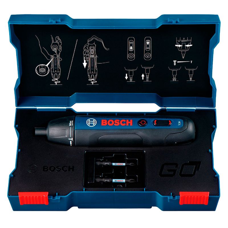 El atornillador inalámbrico Bosch Go2 revoluciona la forma de trabajar con su sistema Push & Go y diseño súper compacto. Con su innovador selector de torque frontal, vas a lograr un control preciso en cada aplicación.