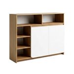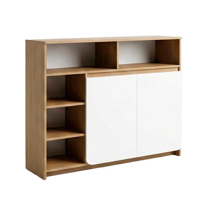 - Construcción resistente en melamina con acabado laqueado en tonos blanco y roble miel