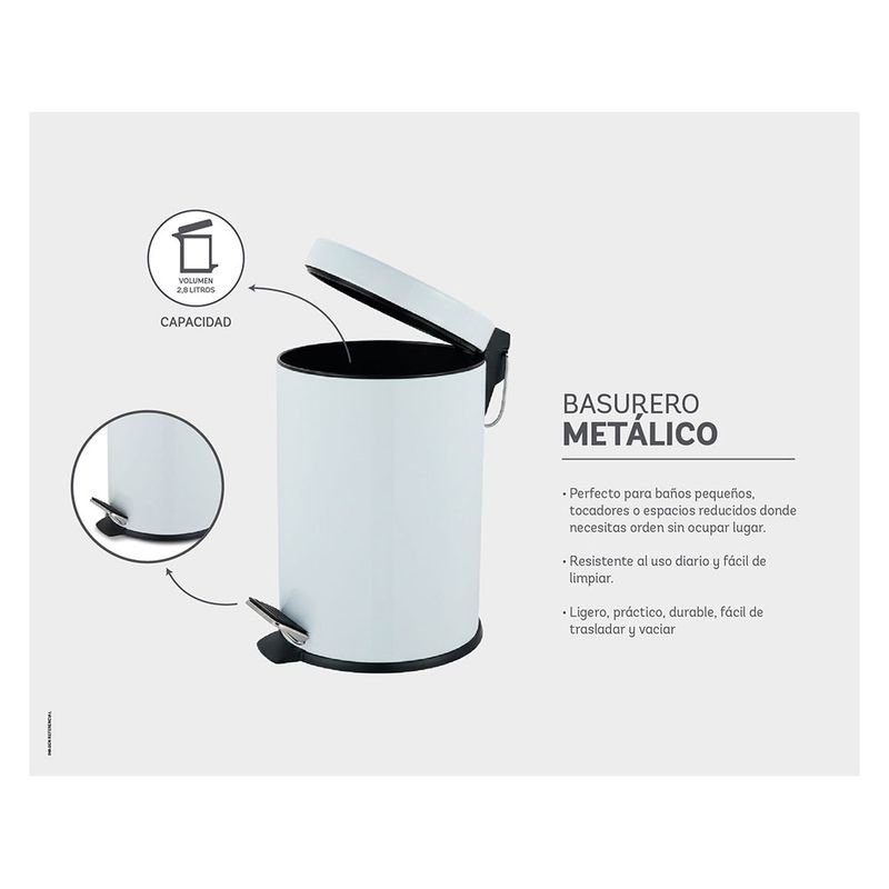 Basurero a Pedal 2.8 Lts Metálico Blanco Cotidiana