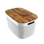 Organizá tu casa con estilo usando esta práctica caja organizadora de diseño moderno. Con su tapa de madera teca y cuerpo en blanco inmaculado, vas a mantener tus espacios ordenados sin resignar la estética.