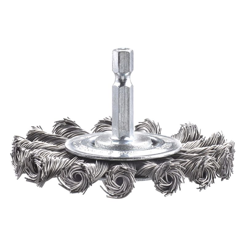 Este cepillo circular se destaca por su construcción robusta y diseño profesional. Las cerdas de acero te permiten realizar trabajos de limpieza y desbaste con precisión, mientras que su vástago hexagonal garantiza un montaje seguro en tu taladro.