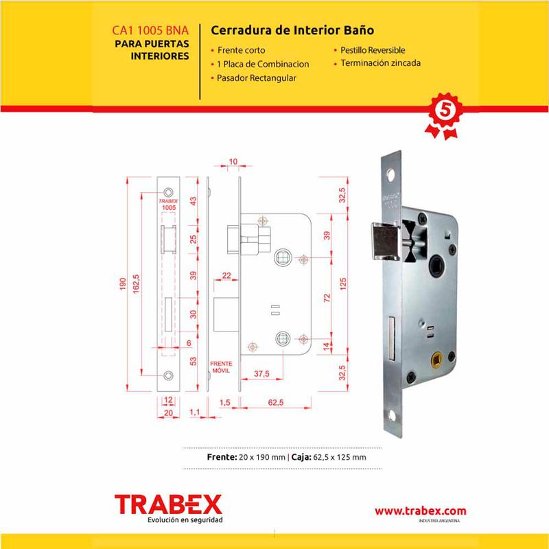 Características Destacadas Cerradura para Baño 1005 Zincada, Frente Corto, TRABEX