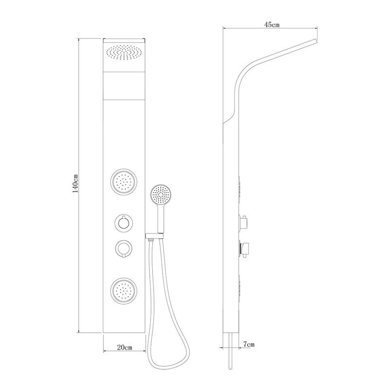 Columna de Ducha 2 Jets 140x20x45 Cm Negro Vessanti