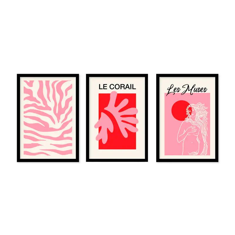 La combinación de un marco negro con diseños en tonos rosa crea un contraste moderno y sofisticado. Su tamaño versátil lo hace ideal para decorar el living, el dormitorio o tu espacio de trabajo, mientras que su sistema de colgado te permite instalarlo fácilmente en cualquier pared.