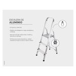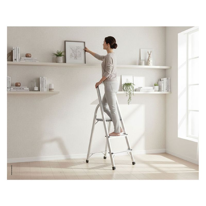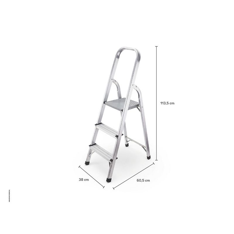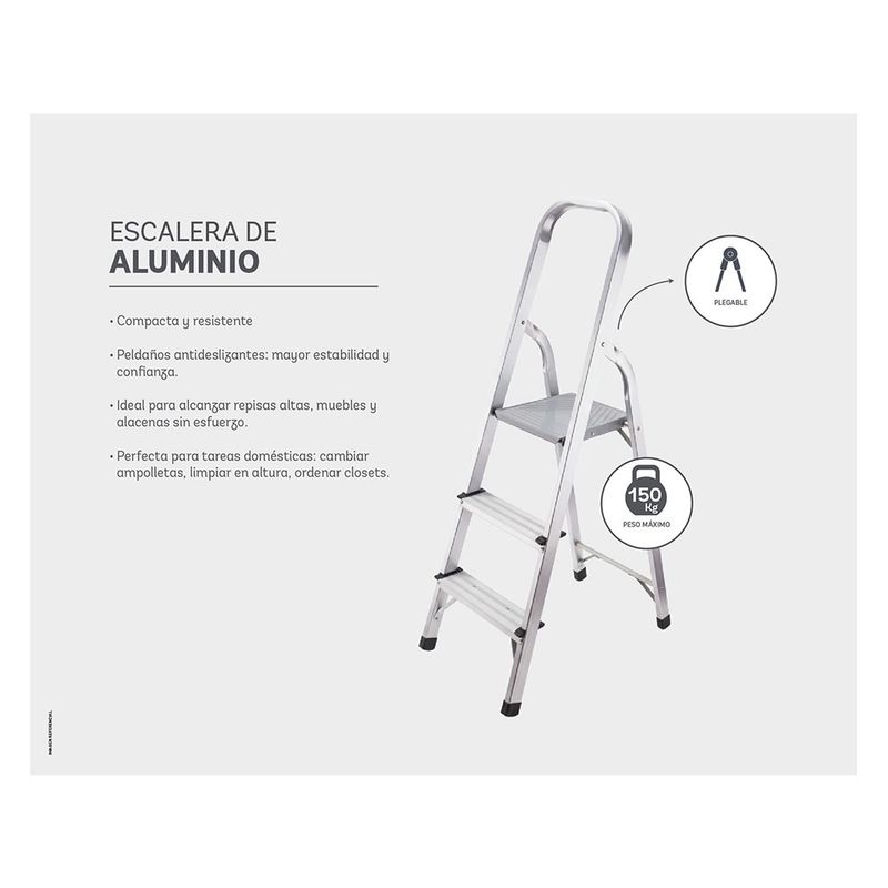 Escalera 3 Niveles 150 Kg Aluminio Gris Cotidiana