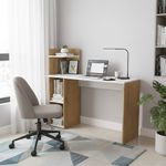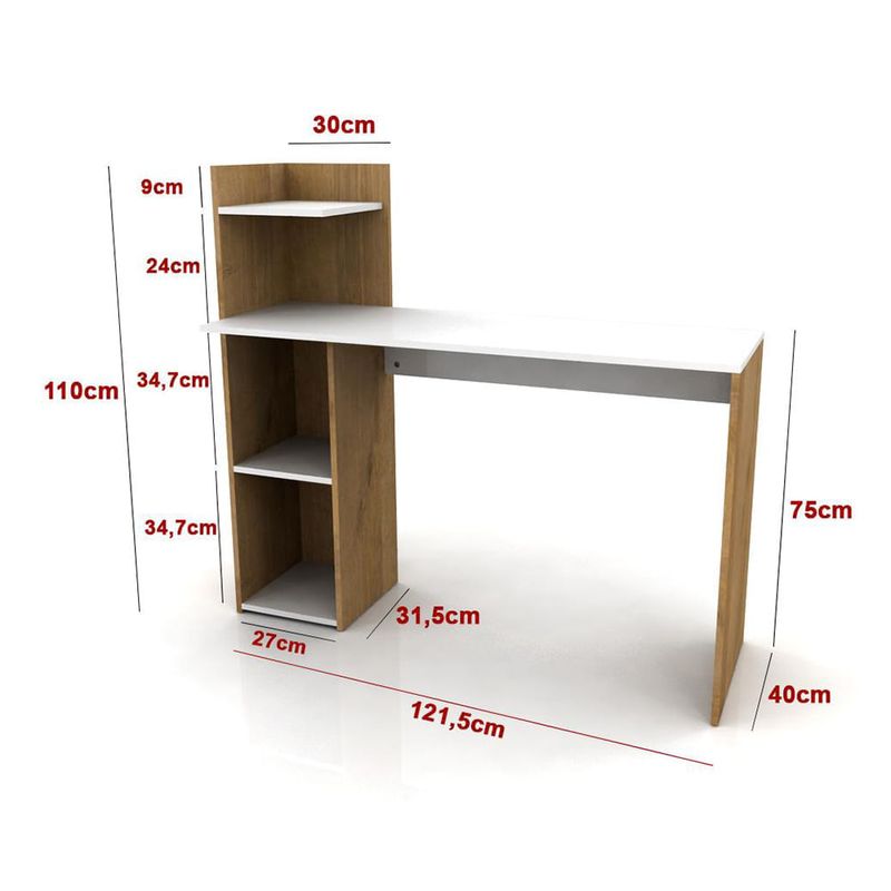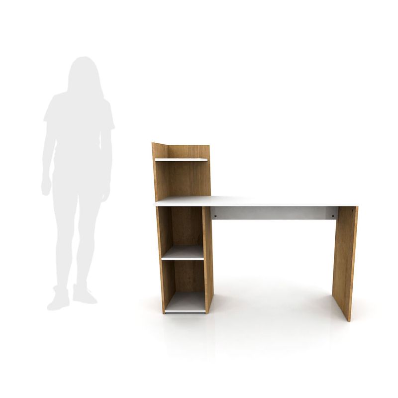 Escritorio Escandinavo con Repisa de 122x40x110Cm en Blanco y Roble Miel de Muebles Gacela