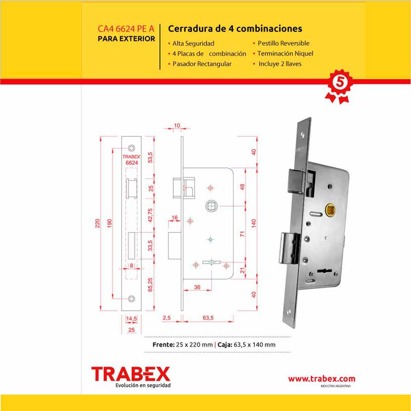 Características Destacadas Cerradura de Seguridad 6624 TRABEX