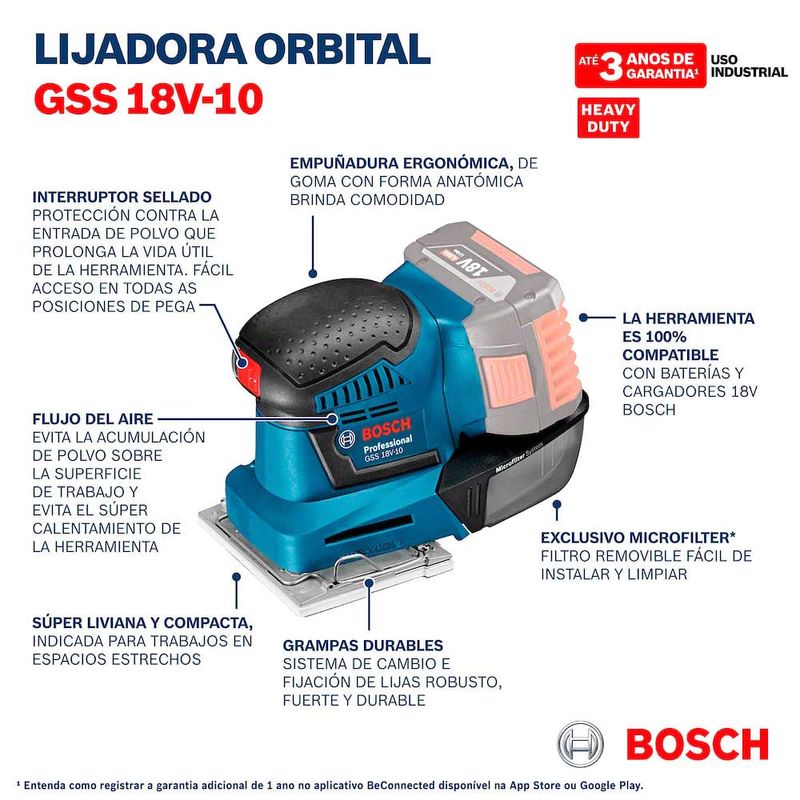 Lijadora Orbital 18V 22000 RPM + Sistema Microfiltro GSS 18V-10 Bosch