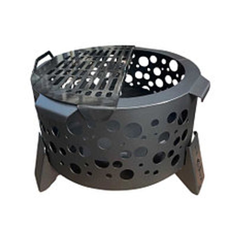 Este fogón se destaca por su construcción sólida y diseño funcional. Sus orificios no solo aportan un toque decorativo sino que también mejoran la circulación del aire, logrando una mejor combustión de la leña. La altura ideal te permite disfrutar del calor sin tener que agacharte demasiado.