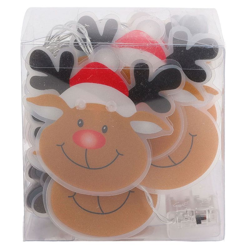 - 10 luces LED con diseño de renos sonrientes en tono marrón