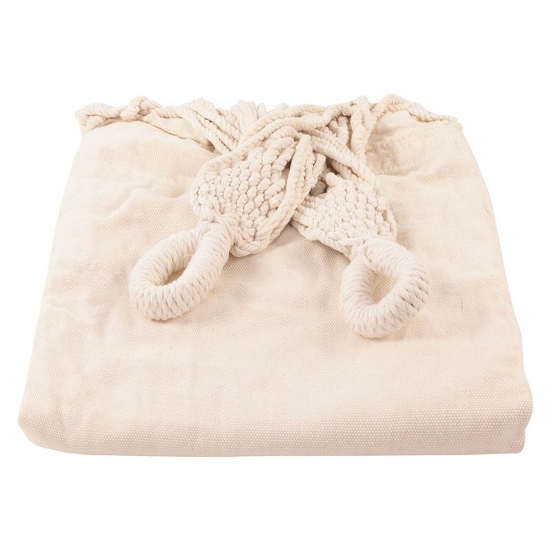 - Confeccionada en resistente lona color beige con detalles en crochet