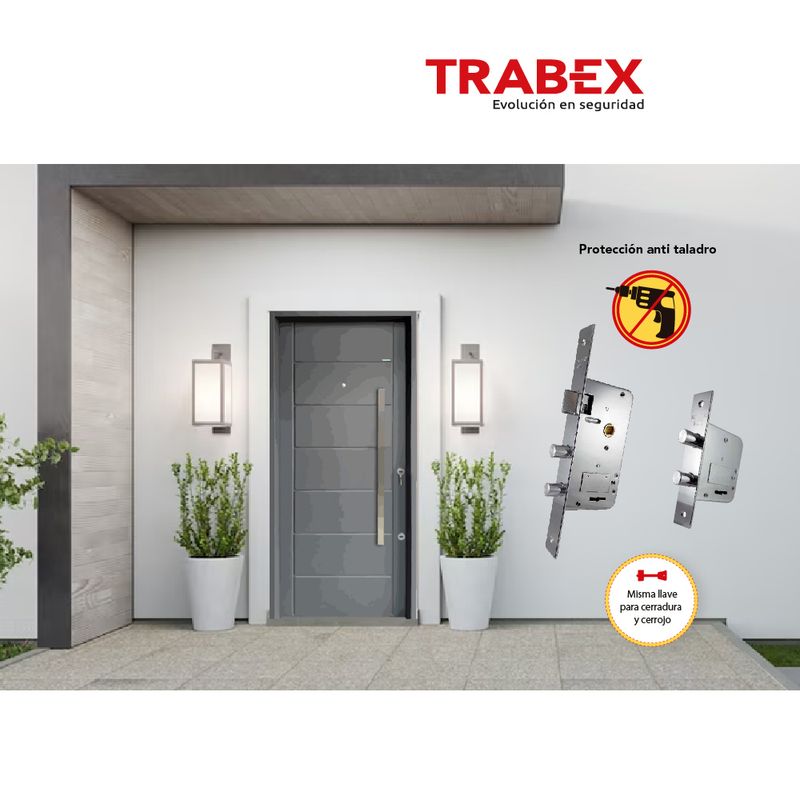 Protegé tu casa con este kit de seguridad Trabex, que combina cerradura y cerrojo de super seguridad, ambos en acero y con la comodidad de abrirse con la misma llave.