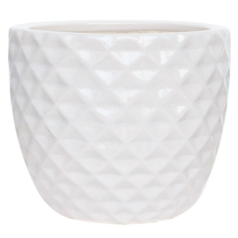 Dale un toque de diseño contemporáneo a tu casa con esta elegante maceta Outzen. Su patrón geométrico en relieve y acabado blanco inmaculado la convierten en un elemento decorativo que va a realzar la belleza de tus plantas.