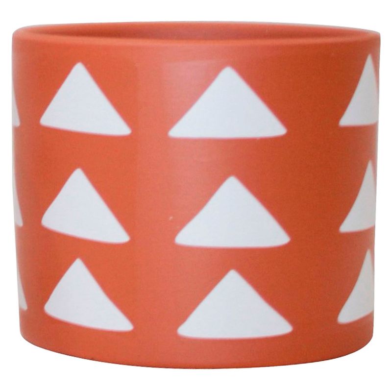 Dale vida y color a tu casa con esta elegante maceta naranja Outzen de 14 Cm. Su diseño moderno con patrones geométricos en blanco la convierte en el complemento perfecto para tus plantas, tanto en interiores como exteriores.
