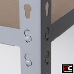 - Estructura robusta en metal gris con 4 estantes de gran resistencia