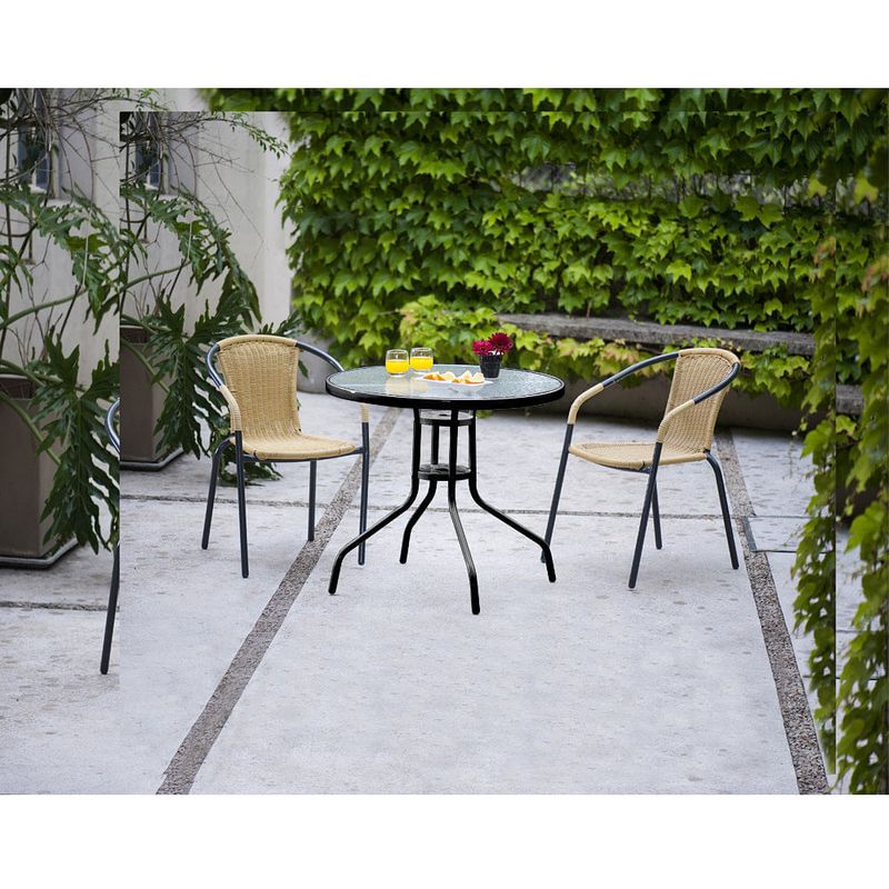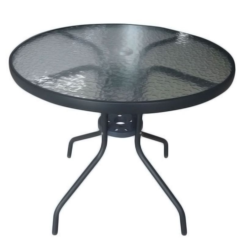Elegante mesa ideal para tu terraza o jardín, con un diseño moderno que combina vidrio templado y estructura de acero en tono gris oscuro. Sus dimensiones de 80x74 Cm la hacen perfecta para espacios pequeños y medianos.Características Destacadas Mesa Tapa Vidrio Gris Oscuro Outzen