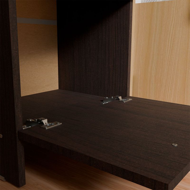 - Fabricada en melamina resistente con acabado mate en tono wengue