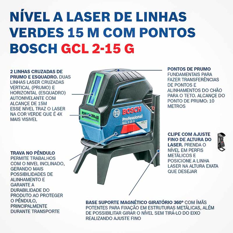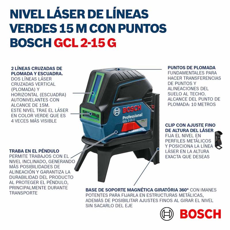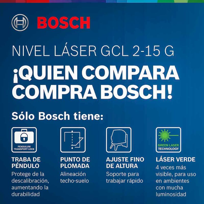Nivel Láser Verde 15 Mts + Puntos Plomada + Soporte GCL 2-15 G Bosch