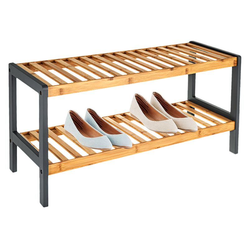 Optimizá el espacio de tu casa con este práctico organizador de zapatos de dos niveles. La combinación de bambú natural y metal crea un diseño moderno que se adapta perfectamente a cualquier ambiente.