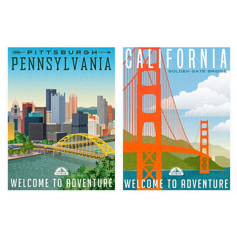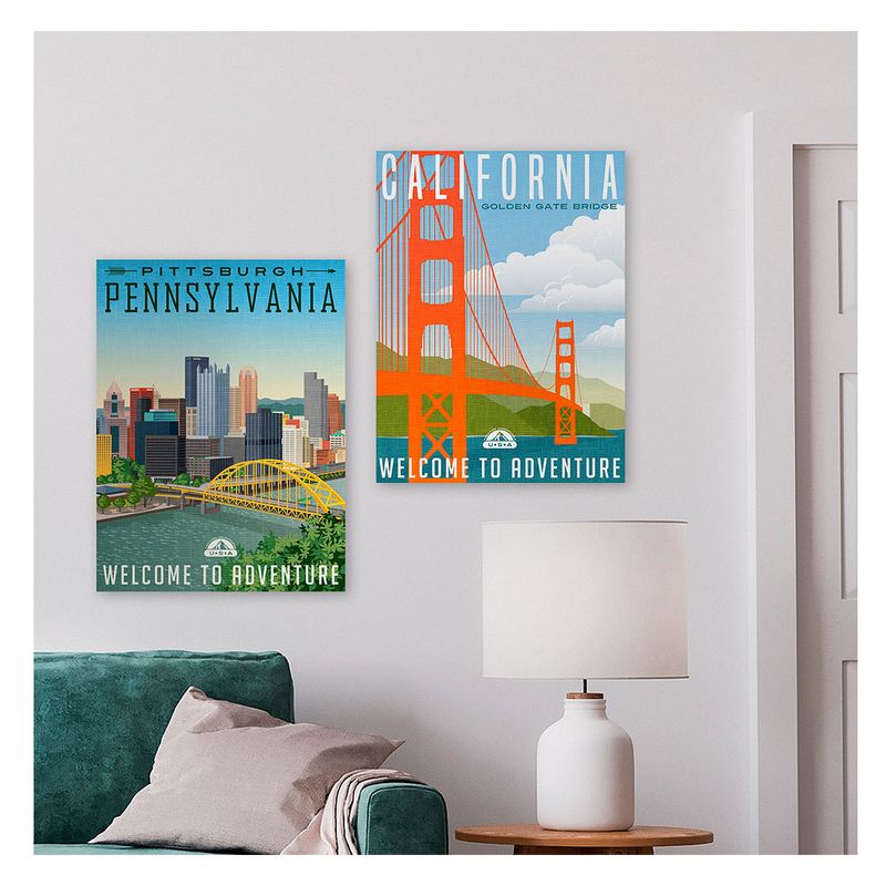Set 2 Cuadros Pittsburgh y Golden Gate Bridge Canvas 30x40 cm M+Design