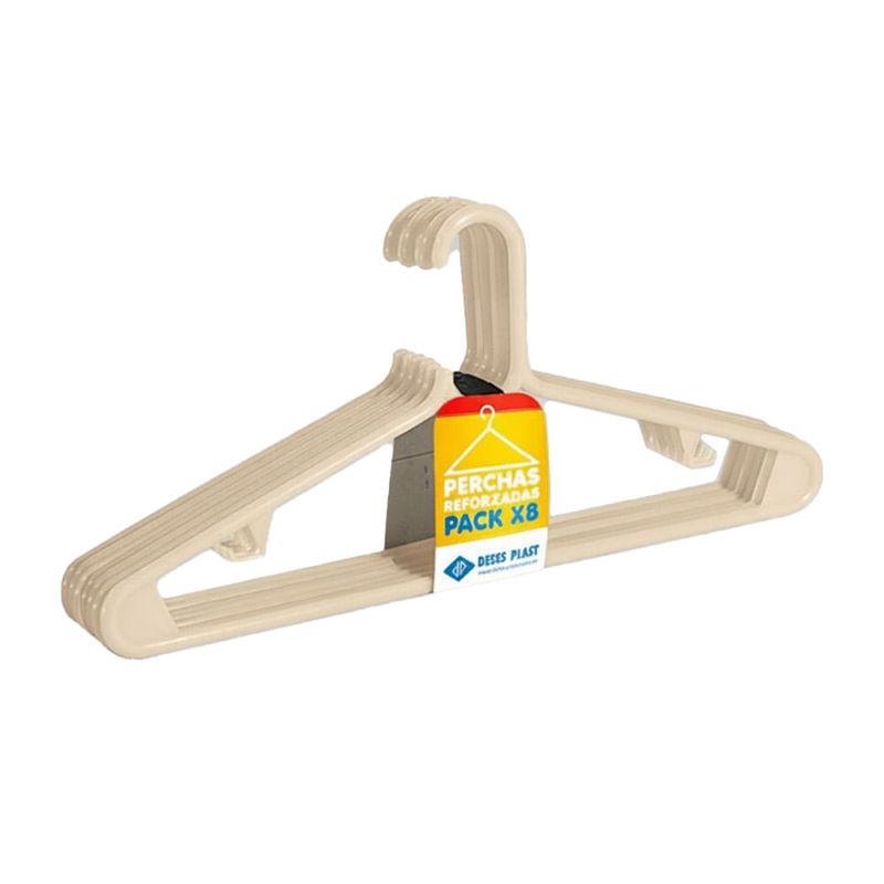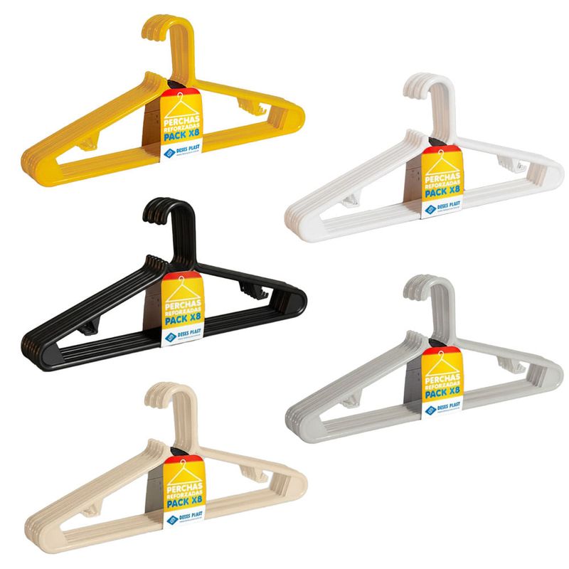- Pack de 8 perchas fabricadas en polipropileno de alta resistencia