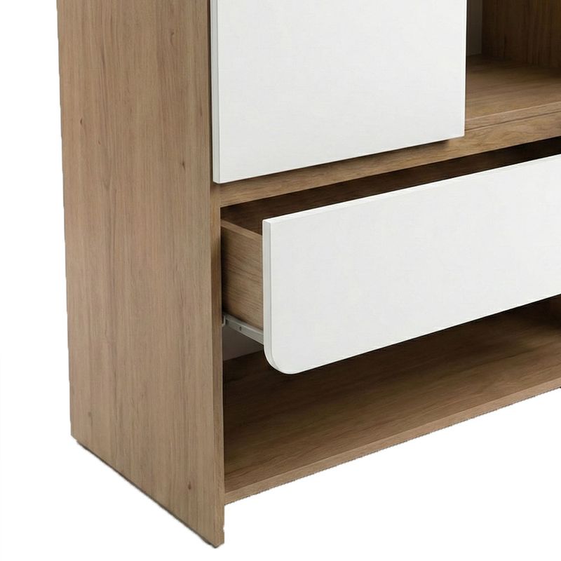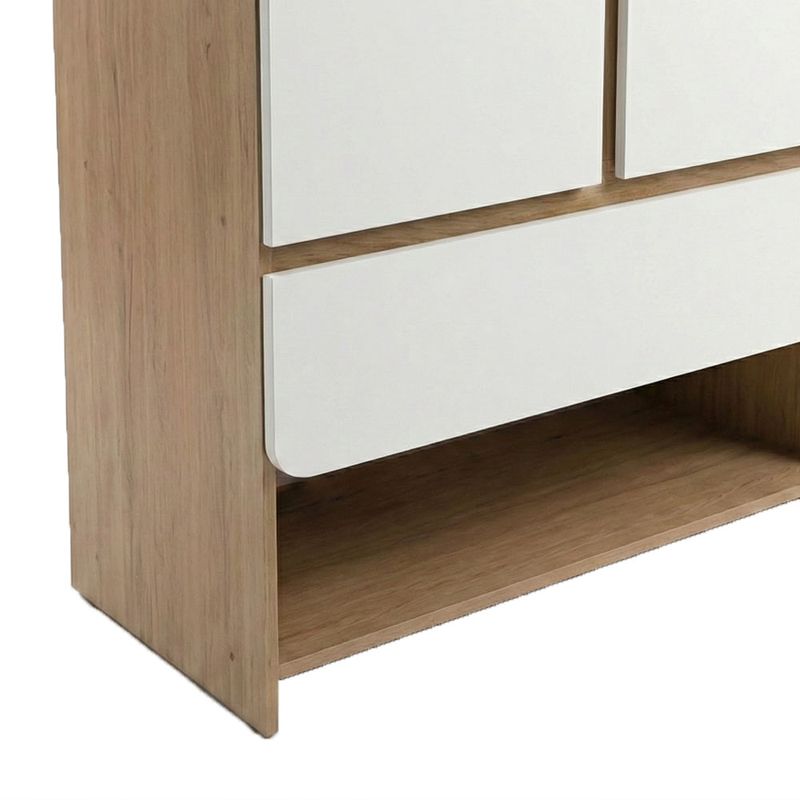 - Diseño moderno con acabado en melamina y laqueado blanco mate combinado con roble miel