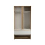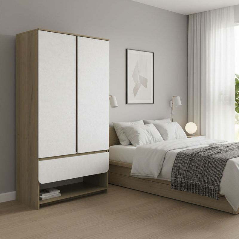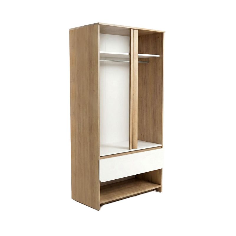 Organizá tu ropa y accesorios con estilo en este moderno placard de diseño argentino. Con su combinación de blanco y roble miel, vas a sumar funcionalidad y elegancia a cualquier ambiente de tu casa.