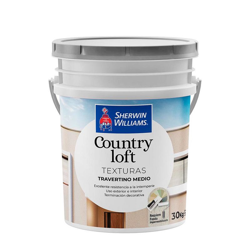 El revestimiento texturado Country Loft de Sherwin Williams te ofrece una terminación decorativa de alta calidad con apariencia de piedra travertino. Con excelente resistencia a la intemperie, este producto versátil es perfecto tanto para exteriores como interiores de tu casa.
