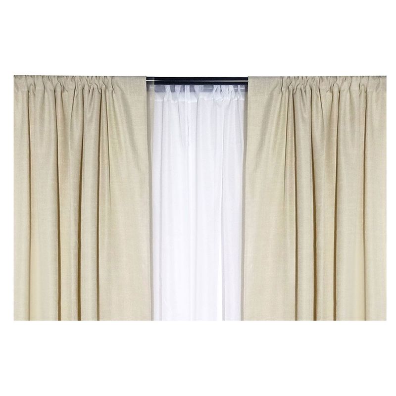 - Set completo con 2 paños de cortinas beige y 2 velos blancos
