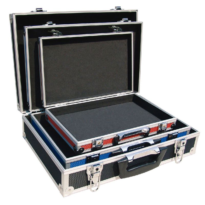 Este set de maletines se destaca por su versatilidad y durabilidad. La combinación de materiales resistentes con un diseño práctico te permite transportar y organizar tus herramientas de manera segura. Los tres tamaños diferentes te dan la flexibilidad de adaptarlos según tus necesidades específicas.