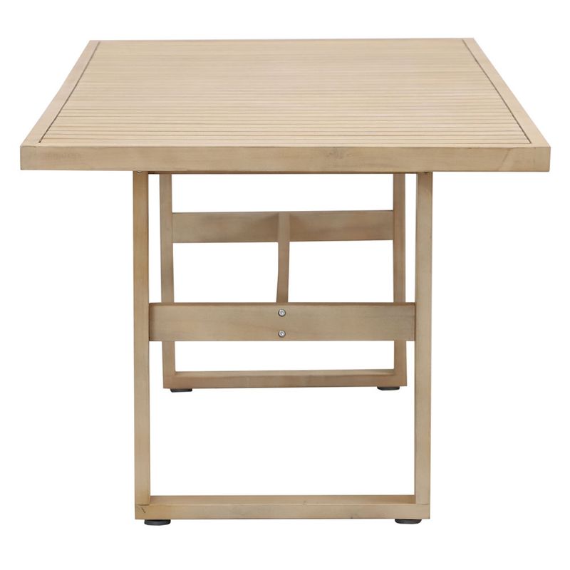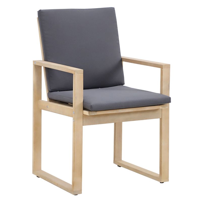 Este set de comedor es la combinación perfecta entre funcionalidad y estilo. La madera de alta calidad y los almohadones en gris crean un conjunto armonioso que va a resistir el paso del tiempo. Los respaldos ergonómicos de las sillas y su diseño contemporáneo aseguran que vas a disfrutar de largas sobremesas con familia y amigos en tu terraza. Hacé tu compra ahora con retiro en el punto de entrega más próximo o envío a domicilio.