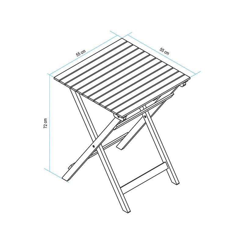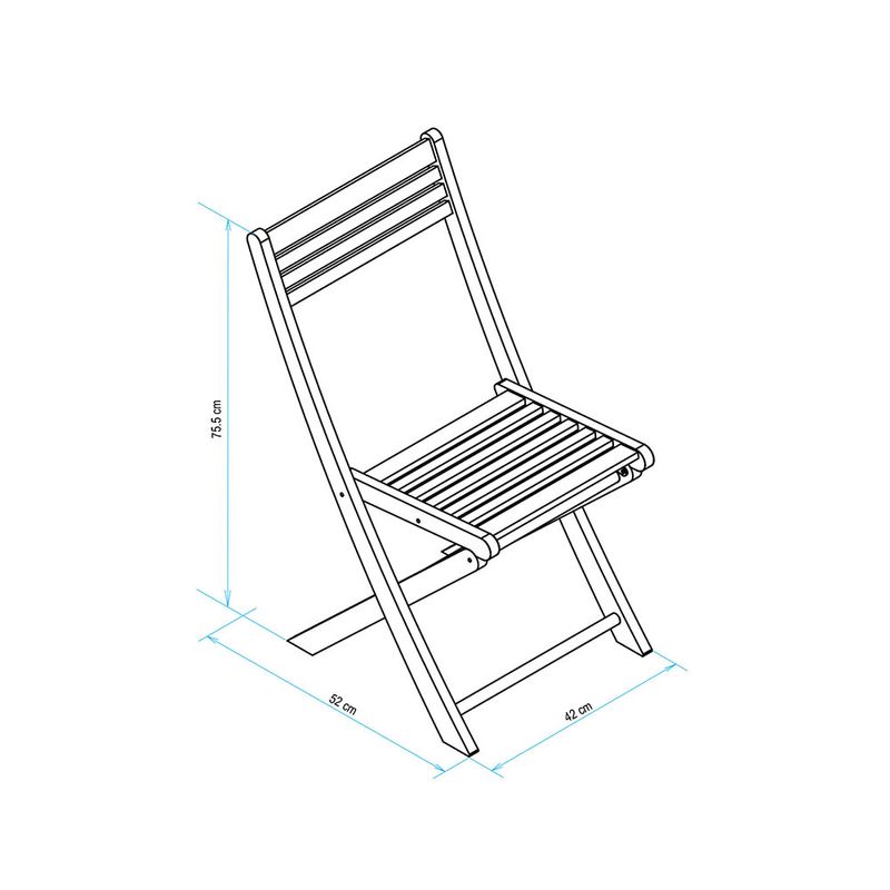 - Medidas compactas: mesa de 72 x 55 x 55 cm y sillas de 75,5 x 42 x 52 cm