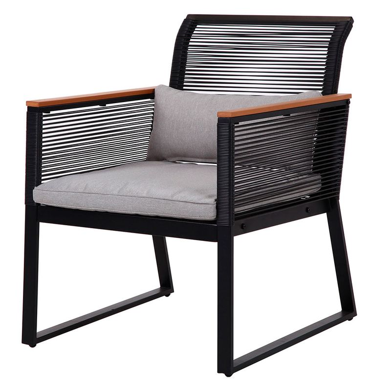 - Diseño resistente en símil rattan y estructura de acero, ideal para espacios exteriores