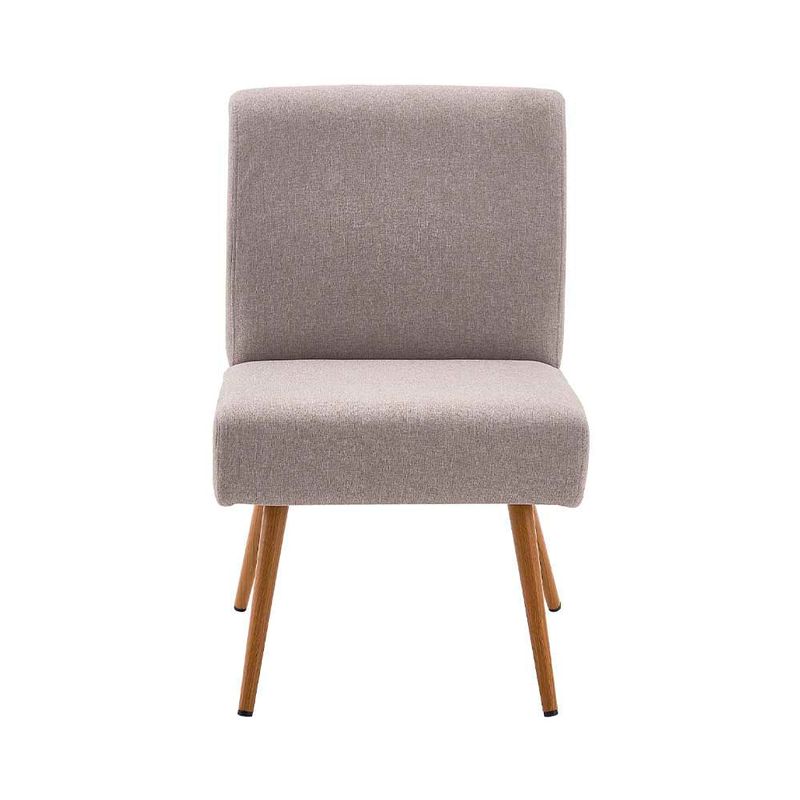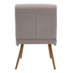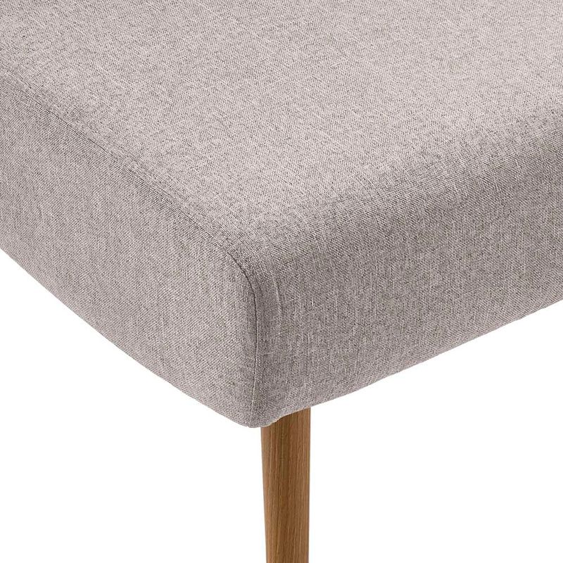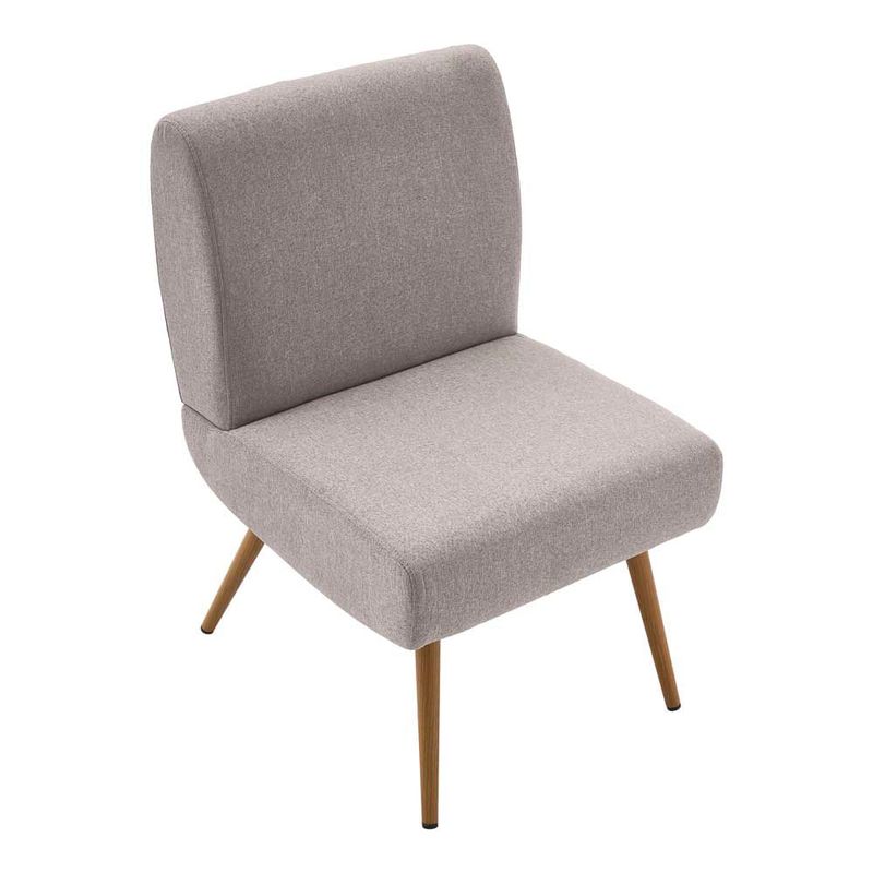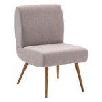 - Tapizado en tela suave en tono rosa con patas de madera natural